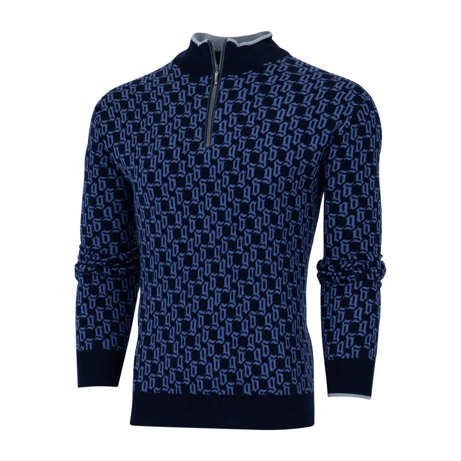 The Wolf Tails Saratoga Quarter-Zip Sweater is crafted from 100% merino wool for lightweight warmth that is exceptionally soft. It features suede taping on the zipper placket and a crafted horn pull, along with Greyson’s signature color-contrast tipping on the left sleeve. Decorated with the signature Wolf Tails print throughout, which features a lowercase rendition of the Gothic “G.” Finished with rib-knit sleeves, collar, and hem.100% Merino Wool